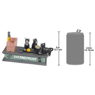 - Our Cat and Mouse mechanical bank measures 7.5″Wx2.5″Dx5″H and weighs 4 lbs. perfect for desktop or bookcase display