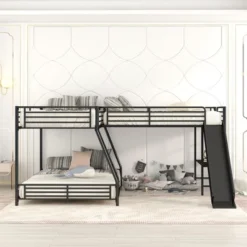 L-Shaped Twin Over Full Bunk Bed With Twin Size Loft Bed,Built-in Desk And Slide, Black – ModernLuxe